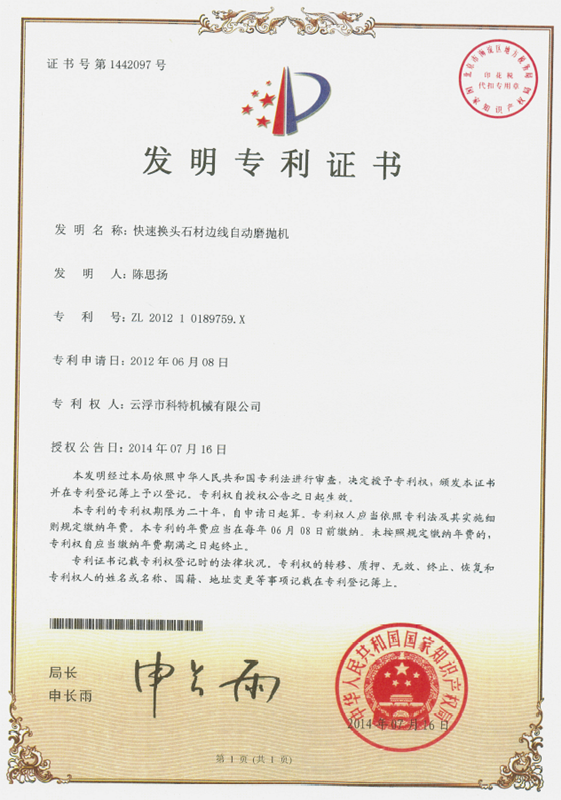 企業(yè)組建了“云浮市石材機(jī)械裝備工程技術(shù)研究開發(fā)中心”,并與高校和科研院所密切合作,致力于光機(jī)電一體化產(chǎn)品的研發(fā)、生產(chǎn)、銷售和服務(wù)。主要產(chǎn)品有框架鋸、全自動(dòng)連續(xù)磨拋機(jī)、橋式自動(dòng)切割機(jī)、全自動(dòng)仿形石線機(jī)、數(shù)控金剛石繩鋸、裁切機(jī)等。產(chǎn)品具有自動(dòng)化程度高、加工精度高和生產(chǎn)效率高等特點(diǎn)。產(chǎn)品除國內(nèi)銷售外,還出口到歐美、東南亞、韓國、印度、中東、非洲、俄羅斯、澳大利亞等國家和地區(qū),深受用戶好評(píng)!皹蚴阶詣(dòng)切割機(jī)”被認(rèn)定為廣東省高新技術(shù)產(chǎn)品,擁有發(fā)明專利1項(xiàng)、實(shí)用新型專利1項(xiàng)。